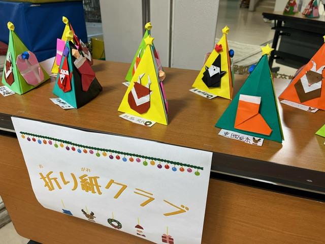 ふと周りをみると、クラブ活動で作ったクリスマスツリーが飾ってありました。