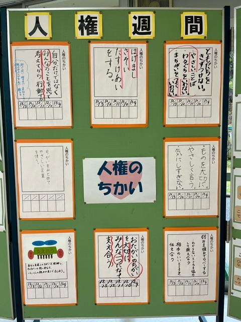 また、先週の人権集会を通して、クラスで作った人権の誓いも掲示してありました。