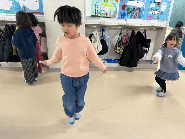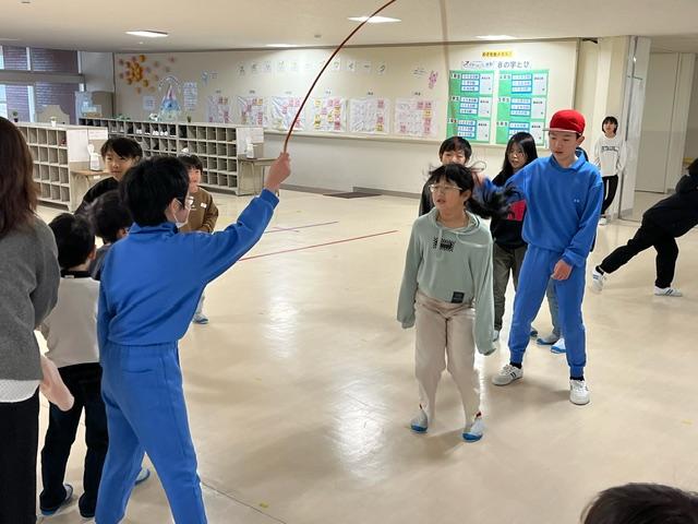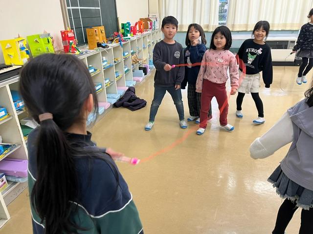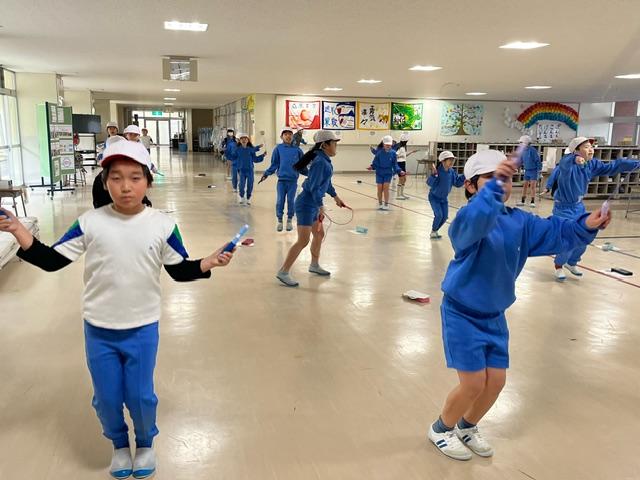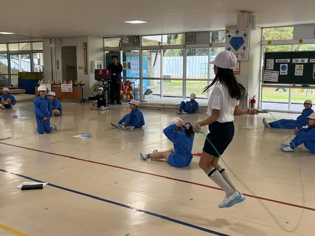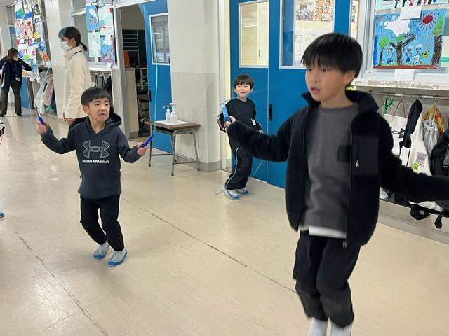 長休み時間。1年生は、元気に縄跳びの練習をしていました。