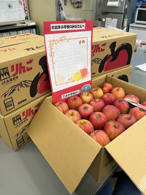 長野県飯綱町より、お見舞いリンゴとして、一人1個ずつ届けられました。