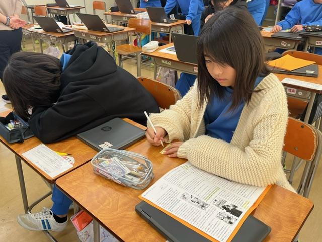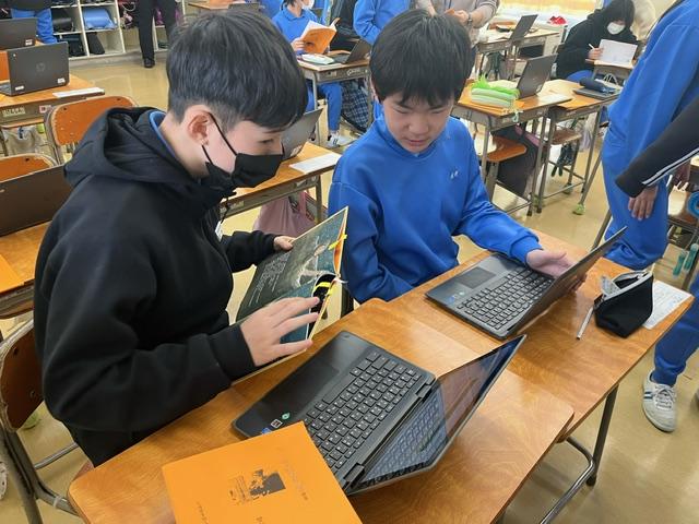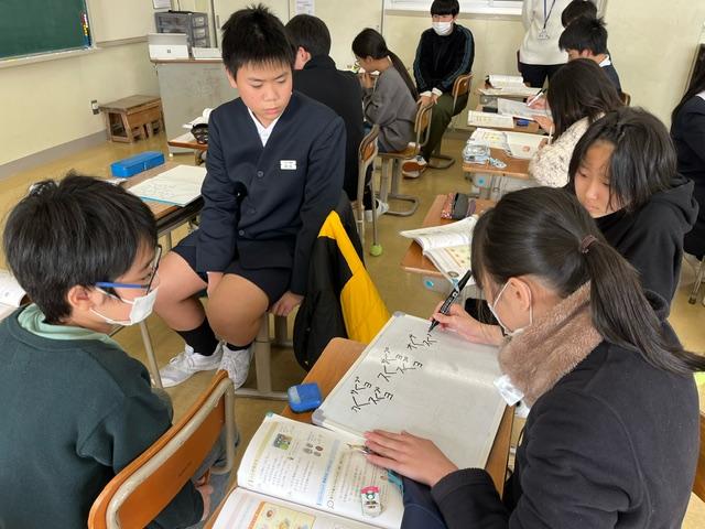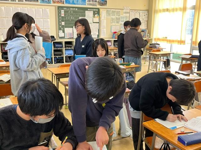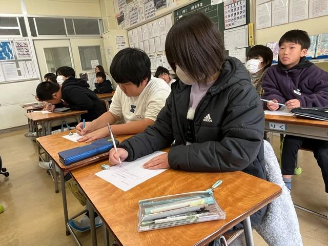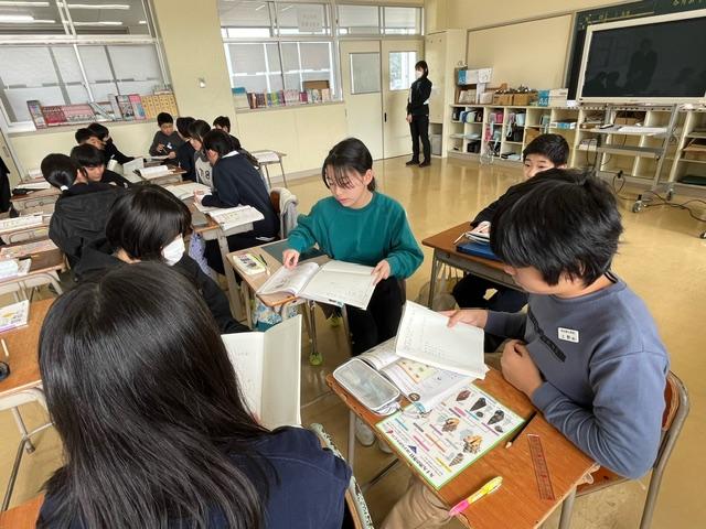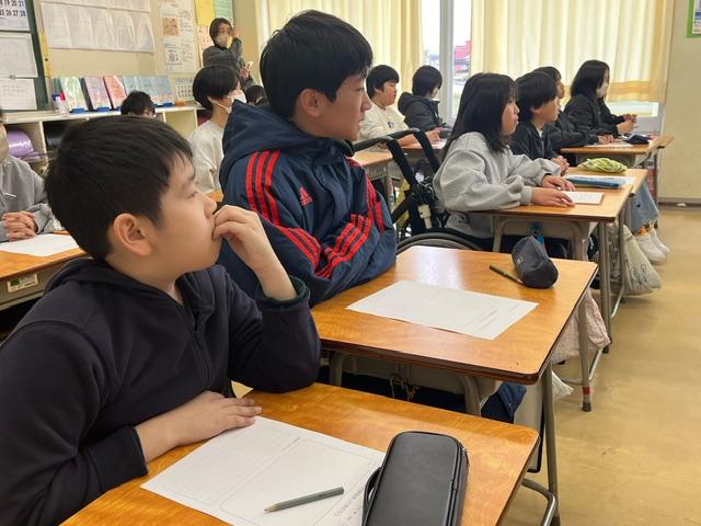 今日、宇出津小6年生は、鵜川小・小木小の6年生と一緒に授業を行いました。3クラスに分かれての授業。