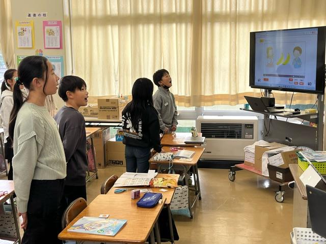 カルバン先生と前田先生から、練習した英語の歌を聞いてほしいとのこと。リズムがとても速く難しいという歌です。