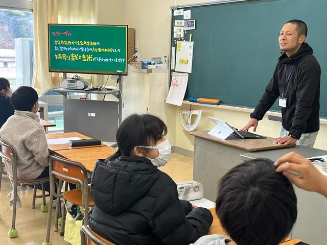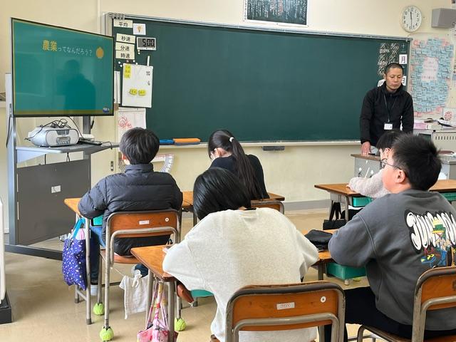 今日、5年生は、奥能登農林総合事務所の農業指導専門員である宮﨑さんから、『特別栽培米』についてお話を聞きました。