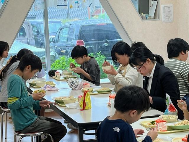 お昼は、給食も一緒に食べています。