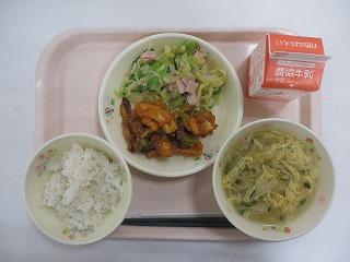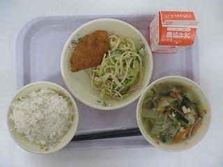 うるち米のごはんに、煮ておいた小豆を混ぜたごはん、正式には尾頭付きの魚ですが、子どもたちにも食べやすいいわしの竜田揚げ、紅白のなます、汁物には能登地方や福井県でもよく食べられている打ち豆を入れました。