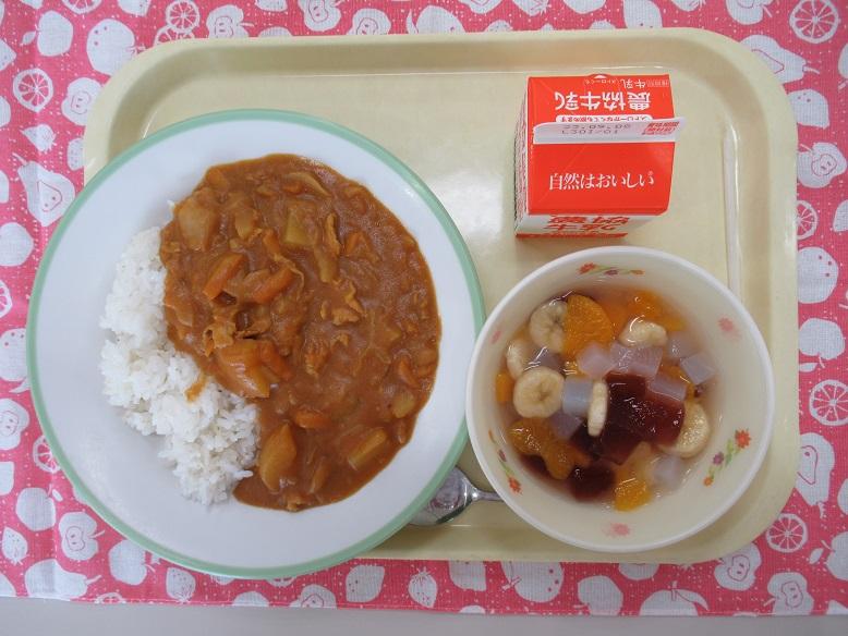 1学期最後の給食はフルーツのゼリーあえを合わせましたが、今回はフルーツカクテルにしましたキラキラ