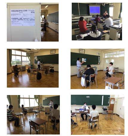 大原簿記法律観光専門学校、専門学校金沢美専、専門学校ファースト学園、金沢科学技術大学校、国際医療福祉専門学校などから担当者が来校し、各校の説明を受けました。