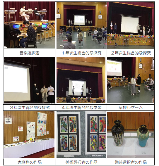 開祭式の後に、音楽選択者による合奏が披露されました。クラス発表では、総合的な探究の時間に取り組んだ内容の発表がありました。その後、文化委員会が企画した早押しゲーム、生徒会が企画した校舎内を回るクイズゲームなど、生徒ひとり一人の努力の成果が見られました。