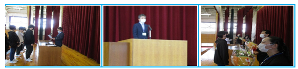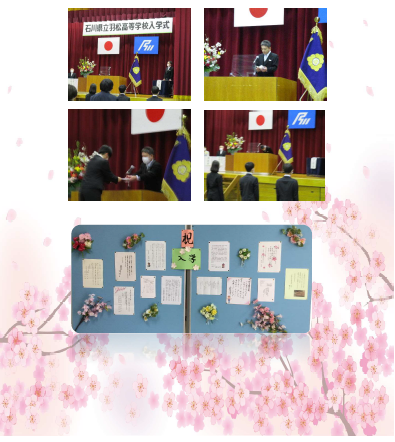 今年度は、石川県教育委員会からの指導で新型コロナウィルス感染症対策として規模縮小の要請をうけ、令和3年4月8日(木)午前11時から、本校体育館で西塔正樹教育振興会長様、横山夕子PTA会長様のご臨席をいただいて、第50回入学式が行われました。今年度の新入生は、男子6名、女子5名の計11名でした。全員、充実した学校生活を送って欲しいものです。