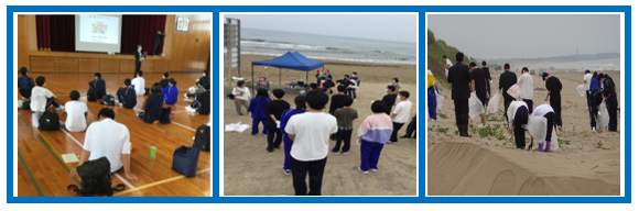 その後、千里浜海岸に移動して、学年対抗海岸清掃「ゴミGET!ゲーム」を行い、優勝は2年次生でした。続いて、(株)能登風土 PRマネージャー任田和真氏より千里浜レストハウス施設の紹介に合わせ、地域に根ざした店舗の在り方について学びしました。