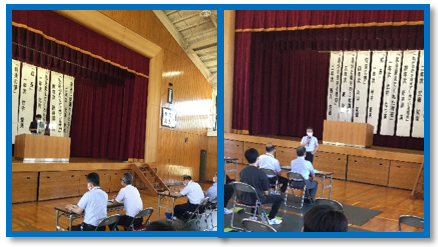 9月14日(水)3、4限目の時間に「県生活体験発表会」校内予選会が体育館で行われ、各学年の代表者が発表しました。発表を聴いた生徒は、一言メッセージを付箋に書き、発表者のメッセージ帳に張り付けをしました。審査は先生方4名で行いました。