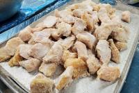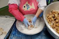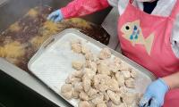 下味に漬け込んだ「輪島ふぐ」に手作業で米粉をまぶし、カリっと揚がりました。