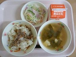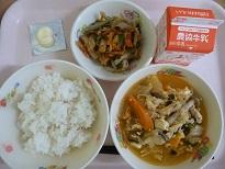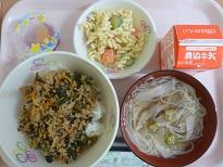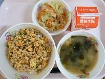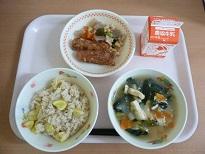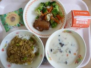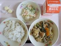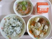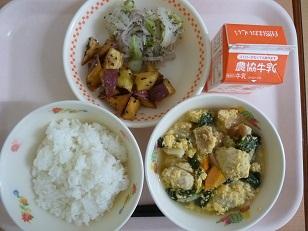 今日は体育祭でした大変盛り上がったあとの給食は、なるべく食べやすいものをと思って、人気メニューカレーそぼろ丼にしました