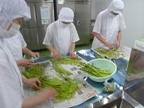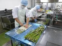 調理員さんたちは、1本ずつ丁寧に下処理をしてくれています