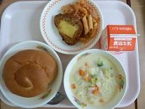 すまし汁は昆布とかつおぶしパックで丁寧にだしをとり、鶏ささみ、焼きかまぼこ、しめじ、てまり麩、ほうれん草を入れました。鶏やしめじのだしも出て、塩分濃度を低くおさえられ、美味しくたべることが出来ました
