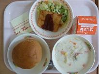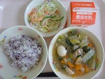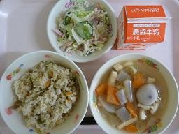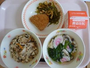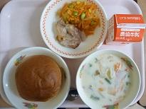 今日は2学期最後の給食でした。クリスマスイヴなので、給食でもクリスマスっぽいメニューにしてみました。