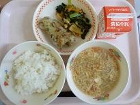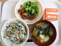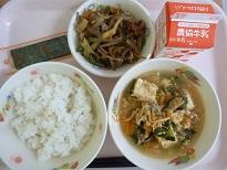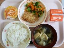 今日は、豚肉のしょうが炒めを、丼物のように食べているクラスもありました