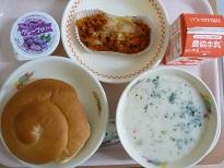 イタリアでよく食べられているピザを、給食ではトーストにしました。