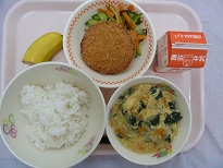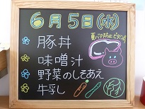 今日の地場産物、県内産食材は、米、牛乳、豚肉、卵、米粉でした