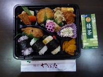 筑前煮には、ごぼう、にんじん、こんにゃく、たけのこなど、サラダには、切り干し大根とさきいかを使いました
