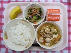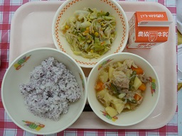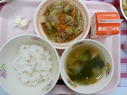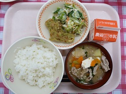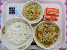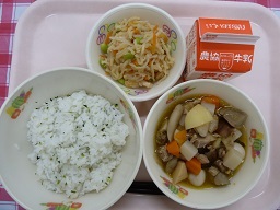 寒くなってきたので、給食でも寄せ鍋風煮を出しました