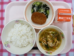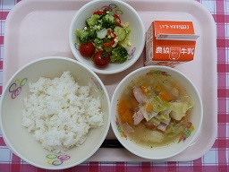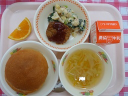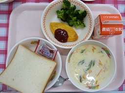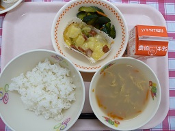 ハムエッグは、朝ごはんに食べることが多い料理ですが、給食でも作ってみました