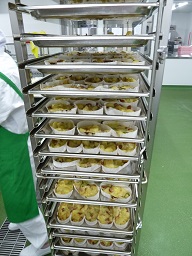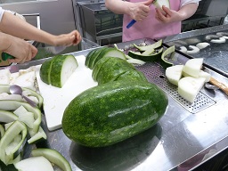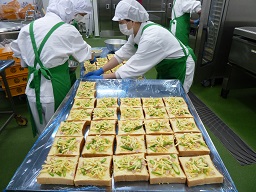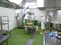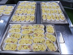 ピカタは450人分が一度に焼けて、配食時間まで、保温しておくことができました
