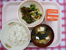 今日は文化祭のリハーサルのため、1,2年生が先に食べ、入れ替わりで3年生の給食時間になりました