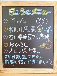 残食調査2日め、今日も1年生は全クラスゼロ、2年1組もゼロでした