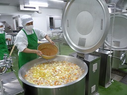 ~カレーに入れる前に、クッキングセンターで一度とうふを温めています~