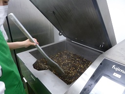 今日から真空冷却機を使い始めました。ゆでた野菜類を冷却するための機器です