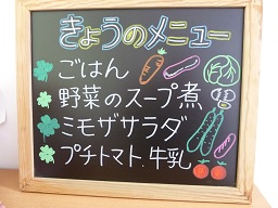 ミネストローネスープには、アルファベットマカロニを入れてみました