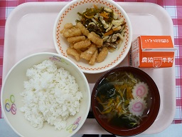 筑前煮は、筑前地方(福岡県)の郷土料理ですが、給食でもおなじみのメニューです