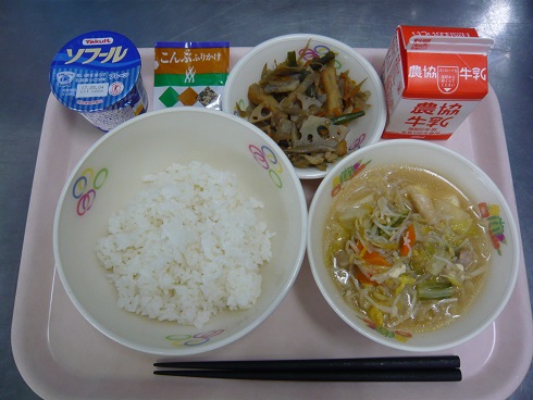 ごはん、いわしの生姜煮、卯の花炒り煮、豚汁、牛乳