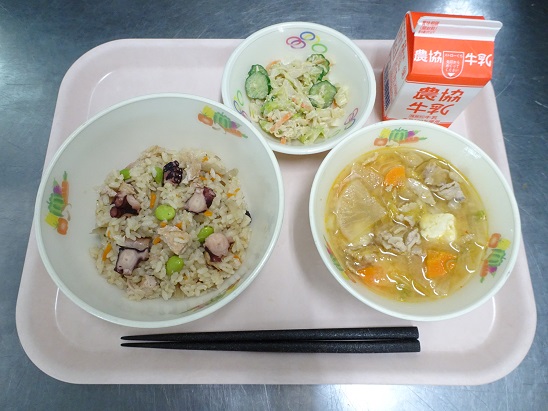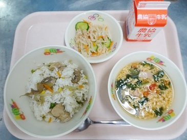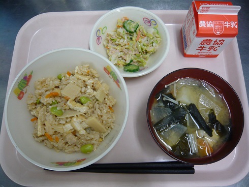 牛乳、たけのこごはん、ツナサラダ、みそ汁