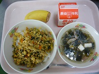 1学期の給食は今日で最後です。明日がらは3食をきちんと食べましょう。朝ごはんをしかりと食べることが、熱中症の予防になります。食事がらは水分と塩分がきちんと摂れます。