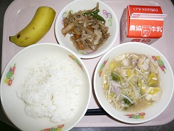 ごはん、とり野菜、五目きんぴら、バナナ、牛乳