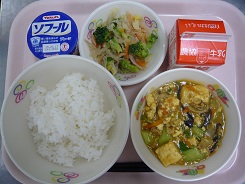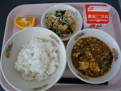 ごはん、麻婆豆腐、五目なます、いよかん、牛乳