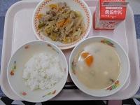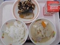 舳倉島で採れたさざえを使ったぜいたくな給食です。