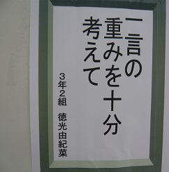 執行部では、人権標語コンクールを行いました。入選作品を廊下に掲示しました。