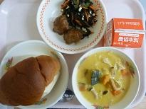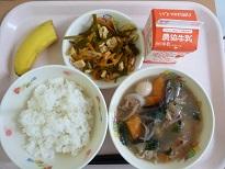 ぜんざいの小豆、大豆、きなこ、そぼろの中には大豆ミートミンチ、のっぺい汁には油揚げ・・豆類や豆加工品をたくさん使った節分給食でした