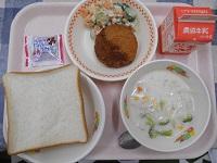 ①ごはん②ゆでキャベツ③タコライスの具 の順で盛りつけます。