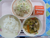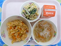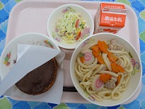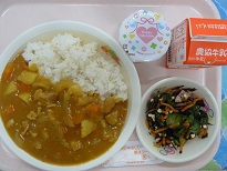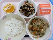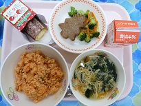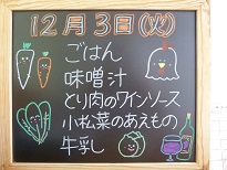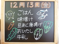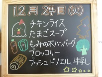 今日は2学期最後の給食、クリスマスイブということで、メニューもクリスマスをイメージしたものにしました