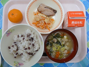 *紅白白玉雑煮(3年1組輪島塗給食)