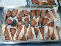 今日は市の農林水産課より、輪島ふぐの切り身を提供して頂きました。(国の農林水産物販売促進緊急対策事業)