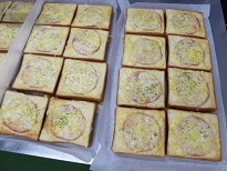 今日のココア揚パンは、丸型のコッペパンで作りました