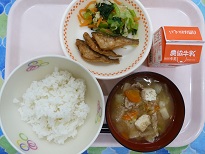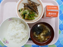 今日は、カルシウム補給に豆あじ唐揚げを出しました