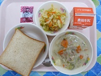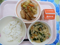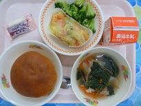 チーズは、好ききらいが分かれる食品ですが、給食にはよく登場します骨を丈夫にし、骨折を防ぐカルシウムが豊富で、ビタミンB2が疲労回復に役立ちます