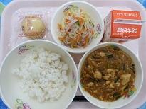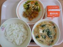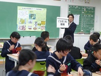 テレビや新聞の取材もあり、撮影された3年4組の生徒はちょっぴり緊張ぎみの給食タイムになりました
