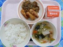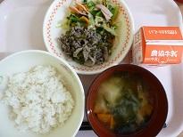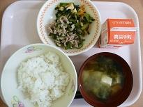 今日は、スタミナメニュー「豚キムチ」を出しました夏バテ防止にピッタリの豚肉、玉ねぎ、にらを使っています